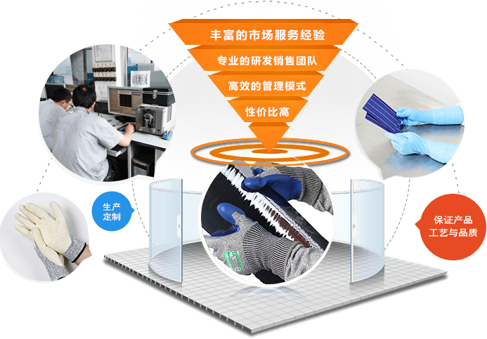 手套芯采用凱夫拉材質(zhì),經(jīng)權(quán)威機構(gòu)檢測屬于5級防割標(biāo)準(zhǔn),針織采用無縫針織,針織密度高,防止硅粉及金屬碎屑進入手背,手掌涂層采用壓紋設(shè)計,具有良好的減震功能,手套制作完成以后經(jīng)過6次清洗工藝處理,經(jīng)權(quán)威機構(gòu)檢測表金屬雜質(zhì)低于45PPBW.